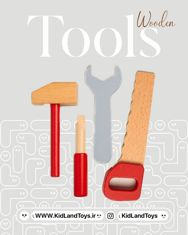 اسباب بازی ست ابزار دستی چوبی به همراه کیف لوازم برزنتی
